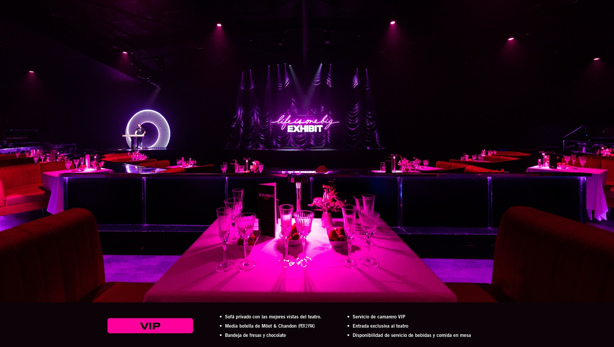 Seating options and packages are available for all tastes and budgets, from Category III with our theatre-style seating up to the exclusive VIP experience by Moët & Chandon.